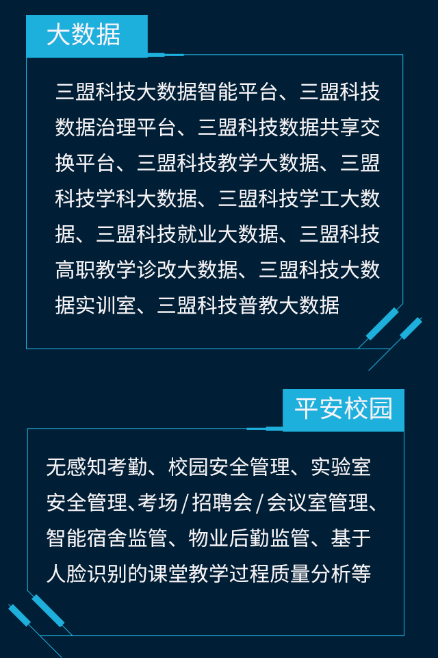 三盟科技股份有限公司(簡稱三盟科技)是一家專注AI+大數(shù)據(jù)技術(shù),專注教育,將AI+大數(shù)據(jù)技術(shù)與教育行業(yè)應(yīng)用場景深度融合,自主創(chuàng)新研發(fā),為教育數(shù)字化提供整體解決方案的軟件技術(shù)服務(wù)商。
