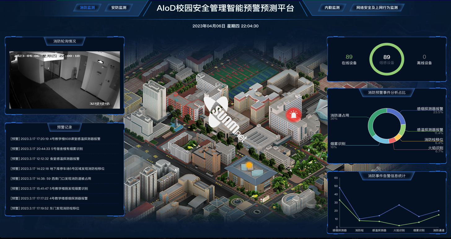 打破僅憑視頻監控的單一管理面向,三盟科技校園安全管理平臺將安全管理范圍的外延不斷擴充至校園全場景,幫助學校構建起涵蓋“智慧學工預警、智慧安防預警、智慧消防預警、網絡行為預警”的綜合預警體系,幫助學校防患于未然,為校園筑起堅不可摧的安全“防火墻”。